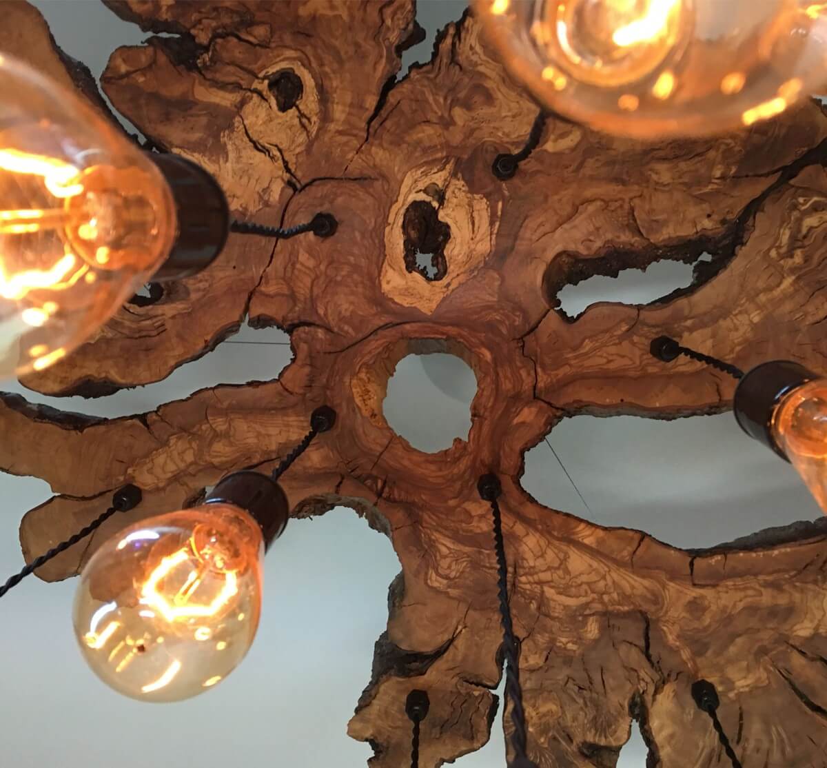 Zeytin ağacı kökünden yapılmış 6 ampüllü 50cm x 80cm tavan lambası